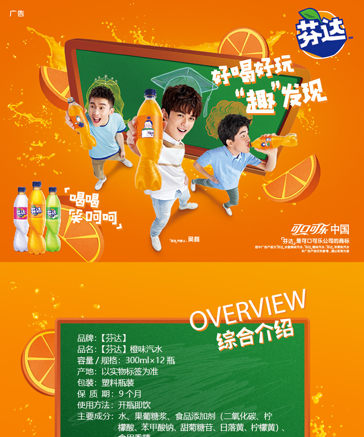 芬达橙味汽水300ml*24瓶