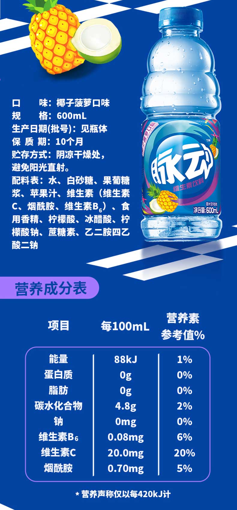 脉动(Mizone) 维生素功能饮料 菠萝味600ml *1...