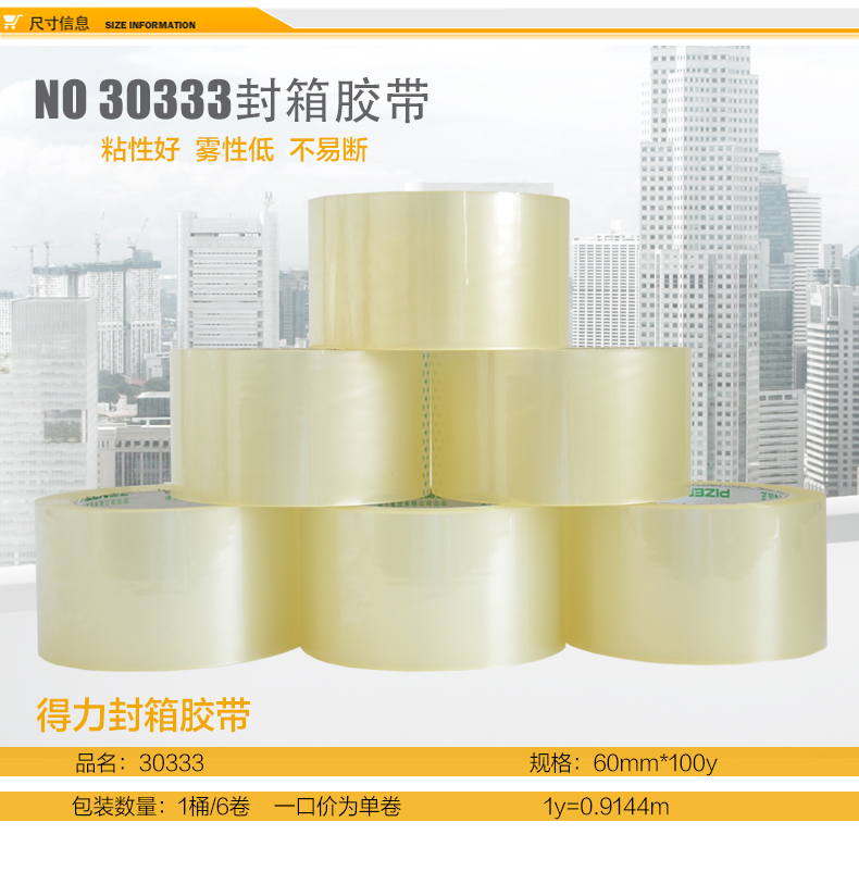 得力(deli) 30333(普透)封箱胶带60mm*100...