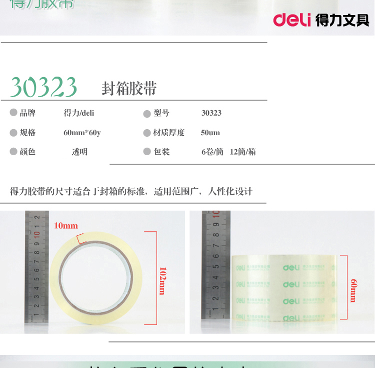 得力(deli) 30323(超透)封箱胶带60mm*60y