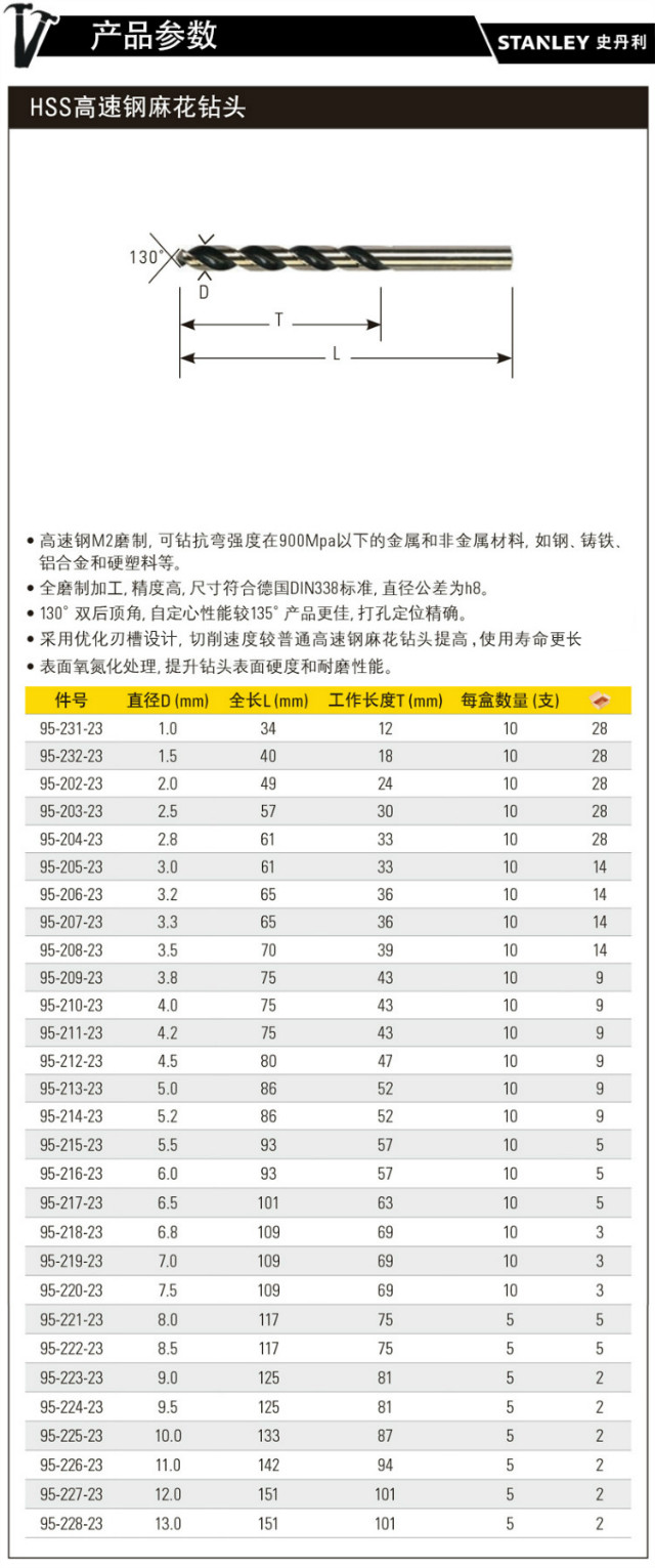 史丹利(STANLEY) 95-213-23单支装 HSS高...