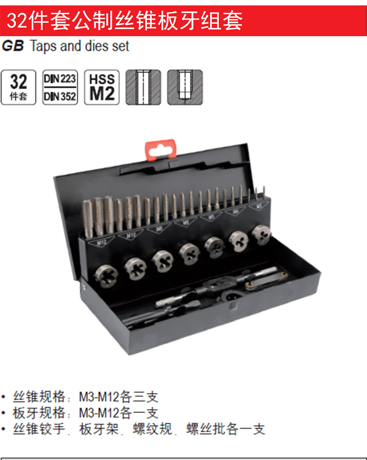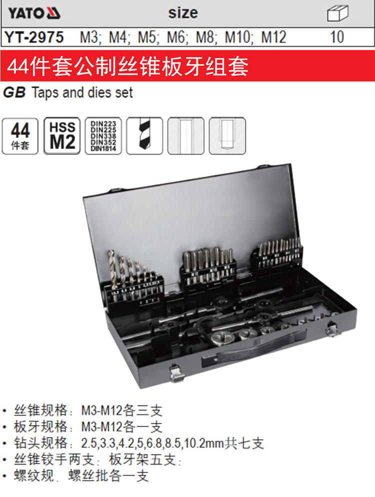 易尔拓(YATO) YT-2975 公制丝锥板牙组套 32件...