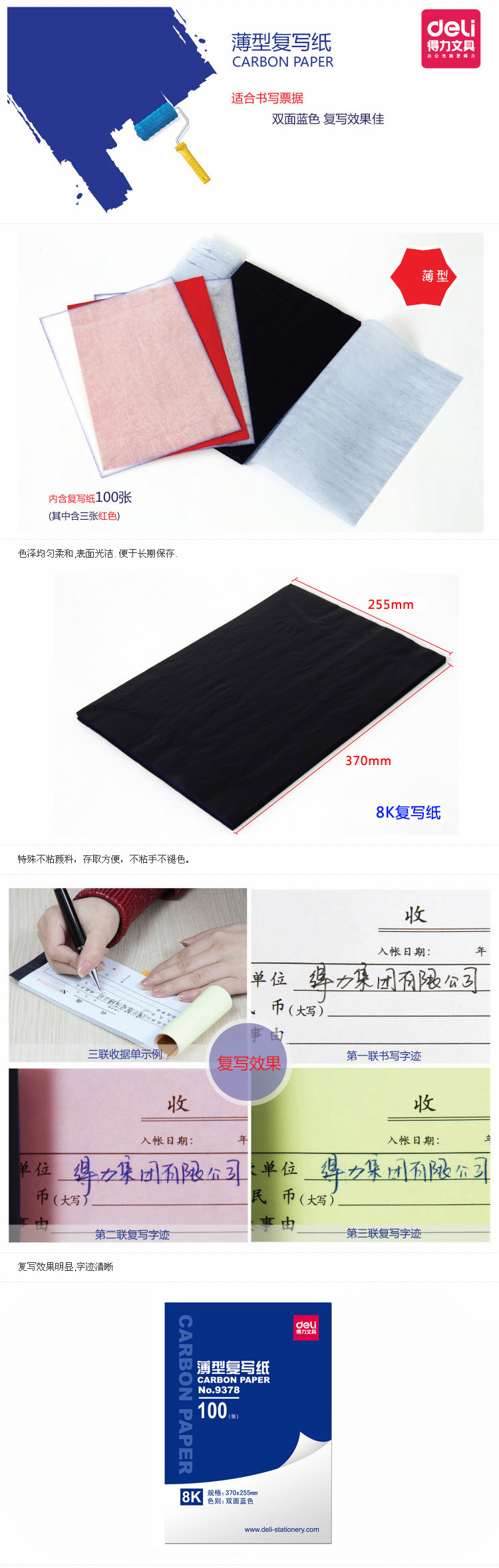得力9378薄型复写纸(蓝)(25.5*37cm)-8K(1...