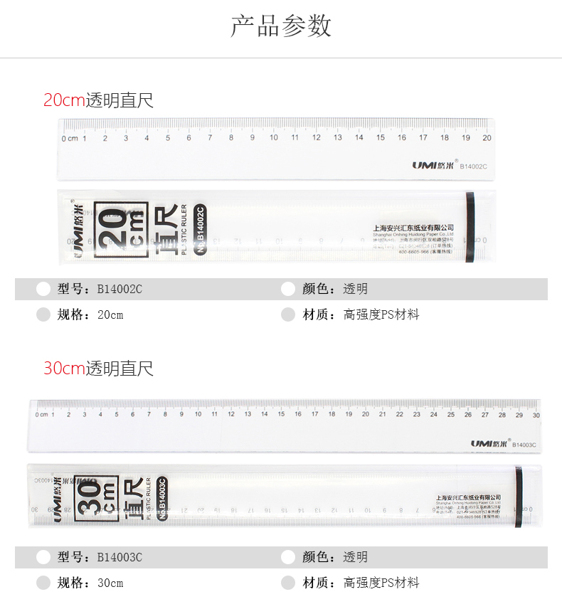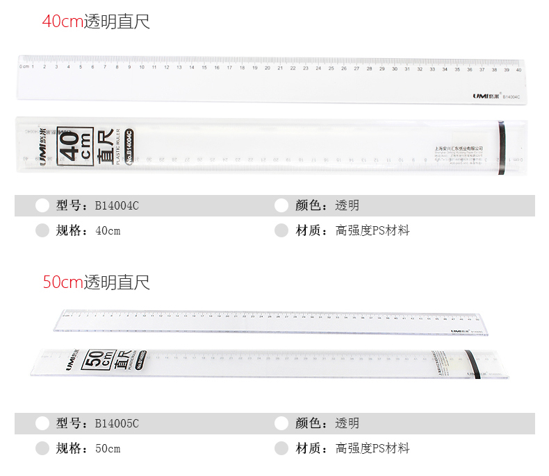 悠米(UMI)透明塑料直尺,40cm B14004C 透明