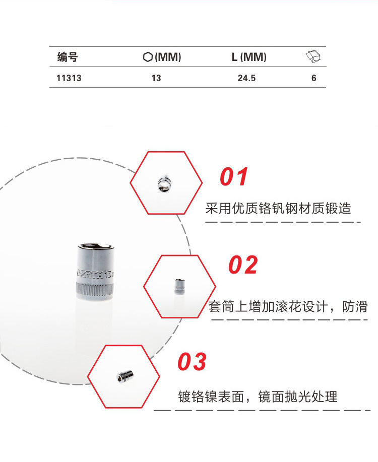 世达(SATA) 11313 6.3MM系列6角套筒13MM