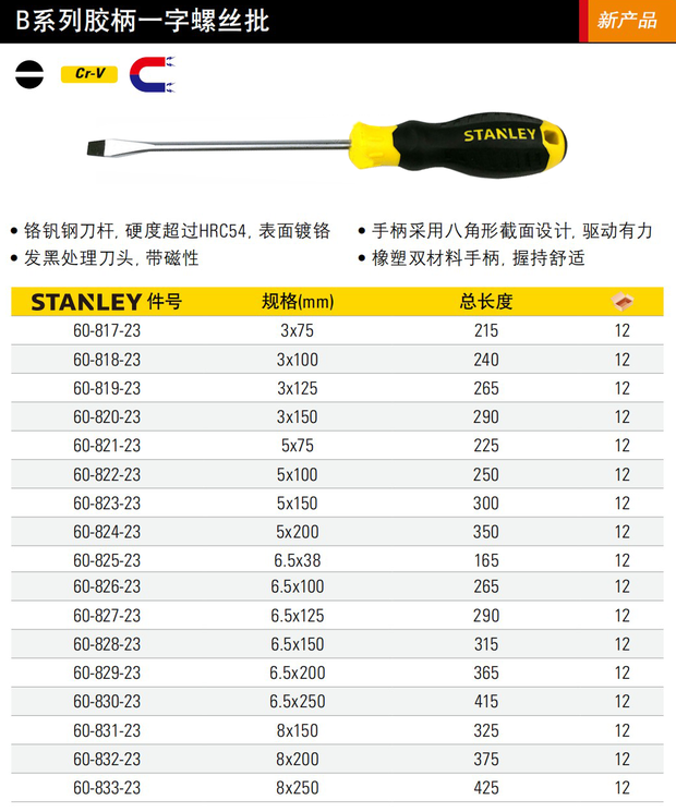 史丹利(STANLEY) 60-817-23B系列胶柄一字螺...