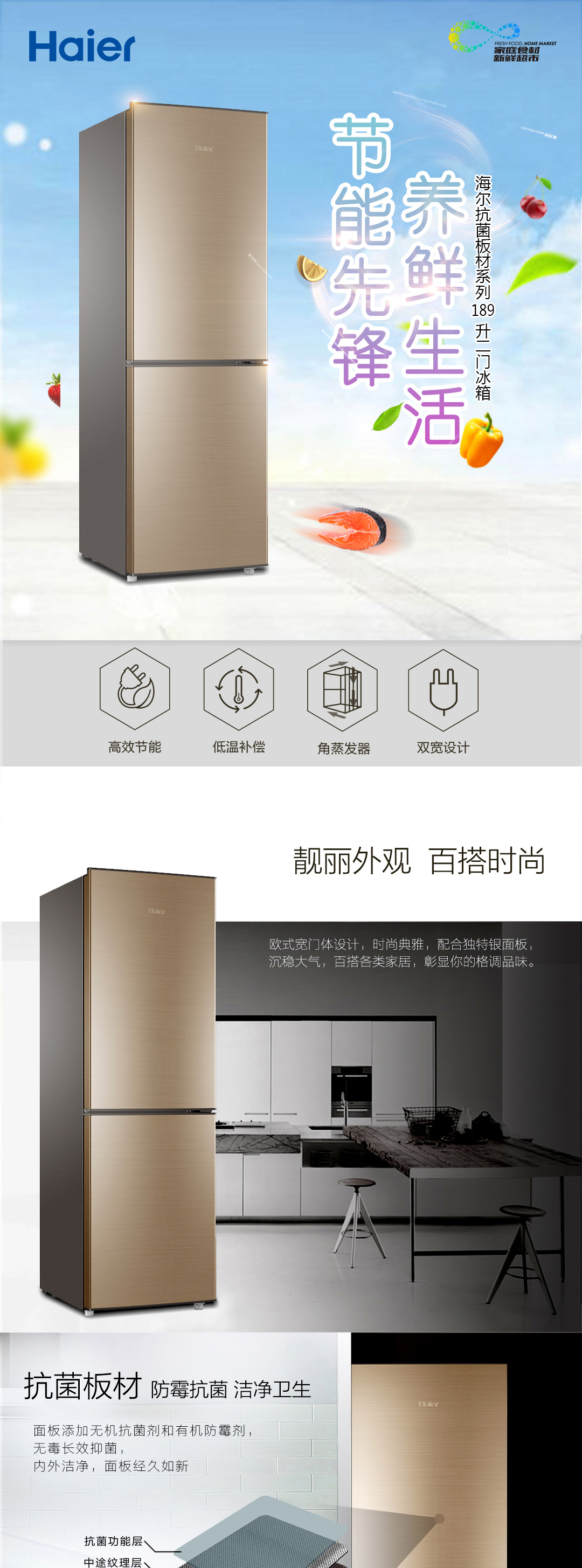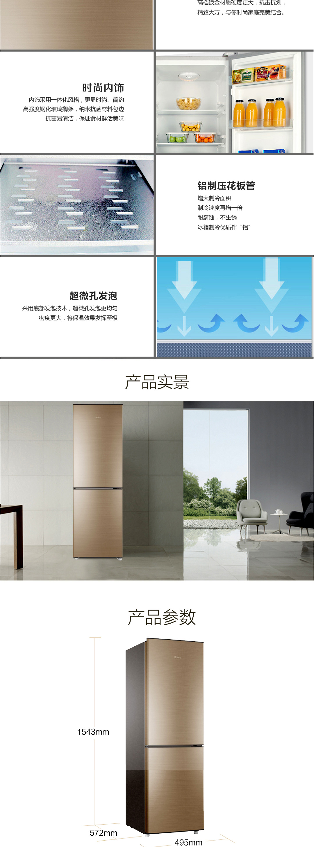 海尔(Haier) 189升直冷两门家用冷藏冷冻冰箱 BCD...