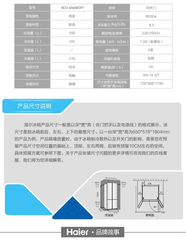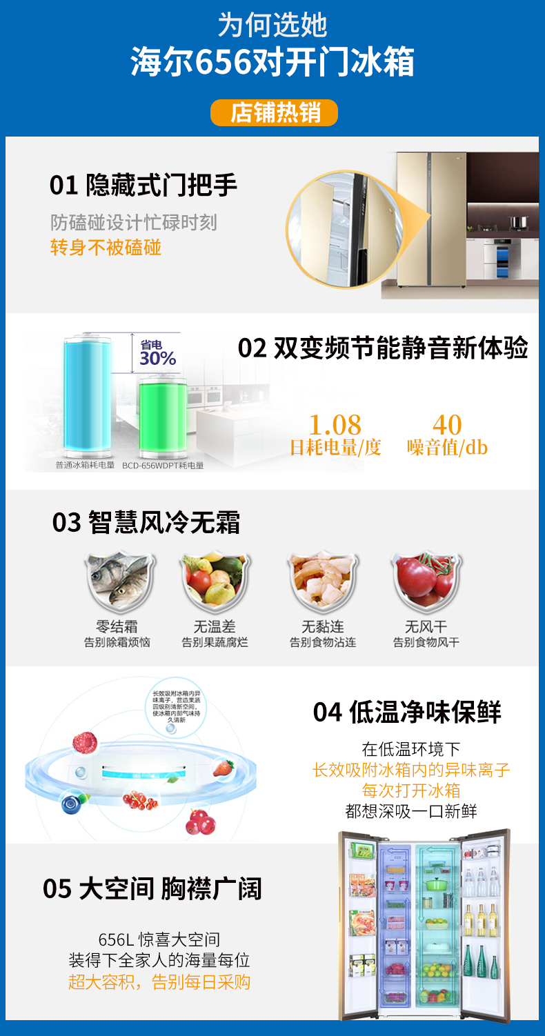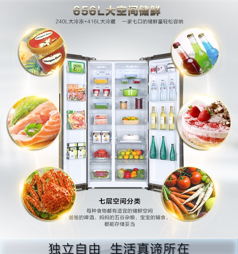 海尔(Haier) 656升风冷对开门变频节能静音无霜冰箱 ...