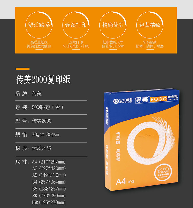 传美2000复印纸 70G 8K 500S 5包/箱
