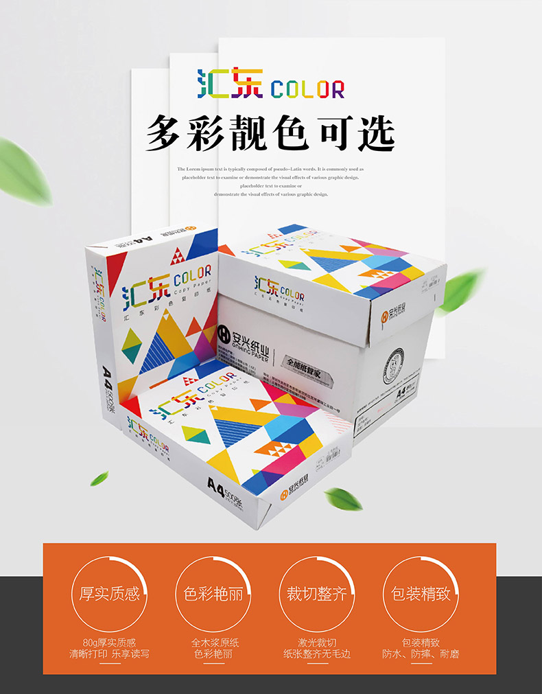 汇东色纸 80G A4绿色 500S/包 5包/箱