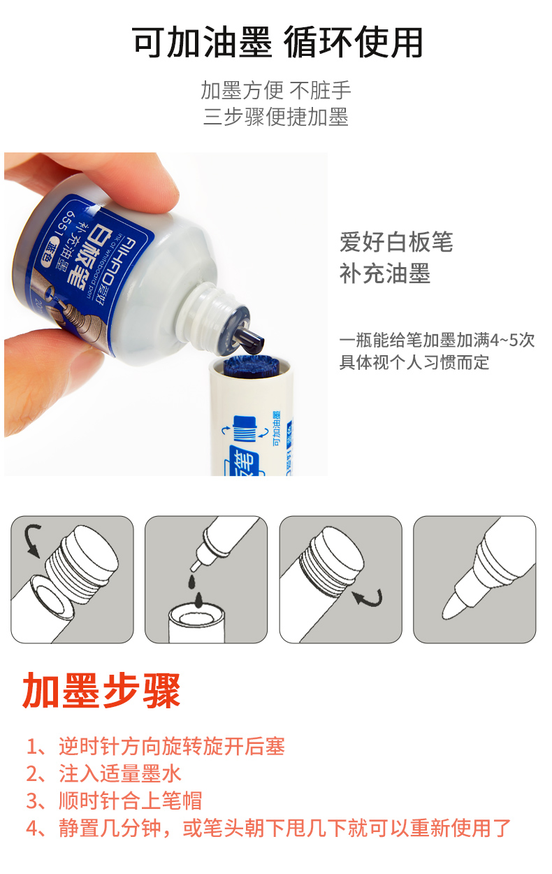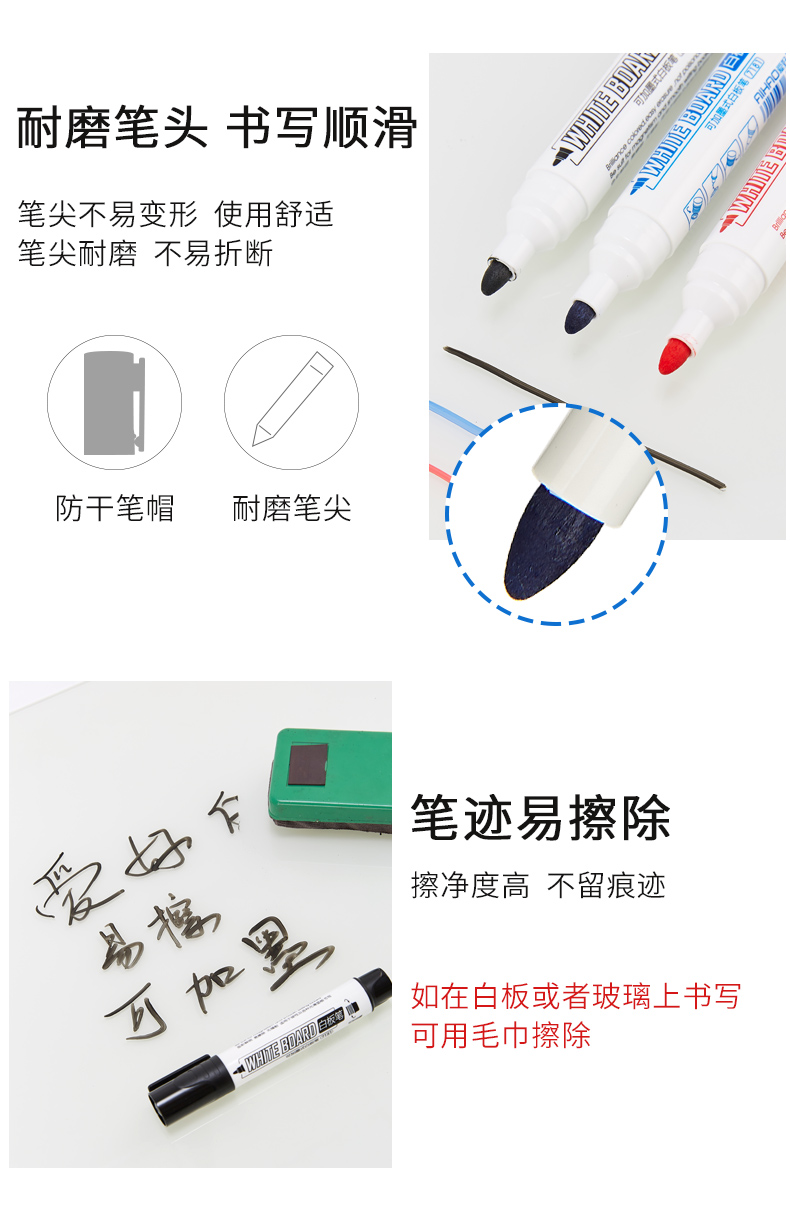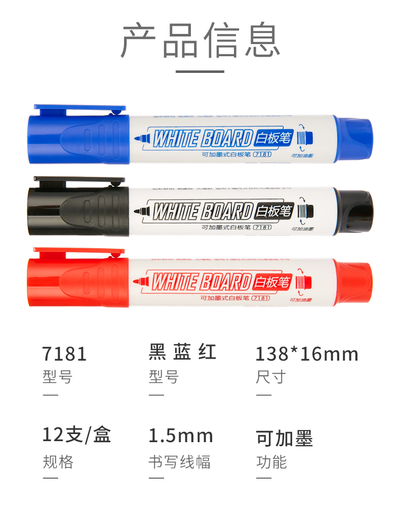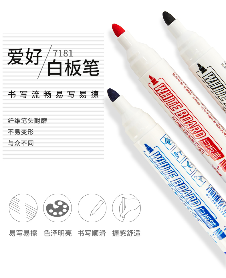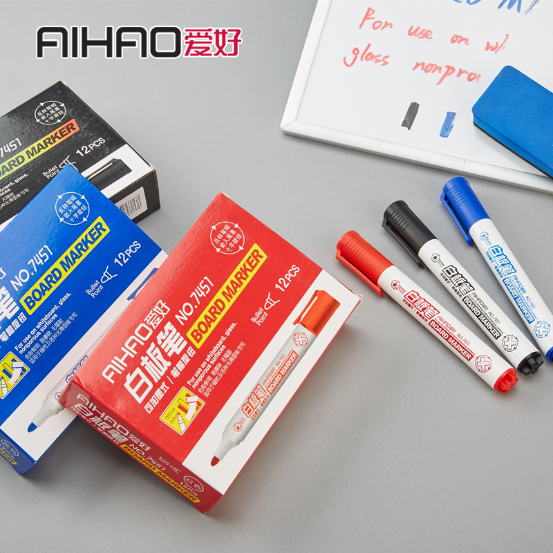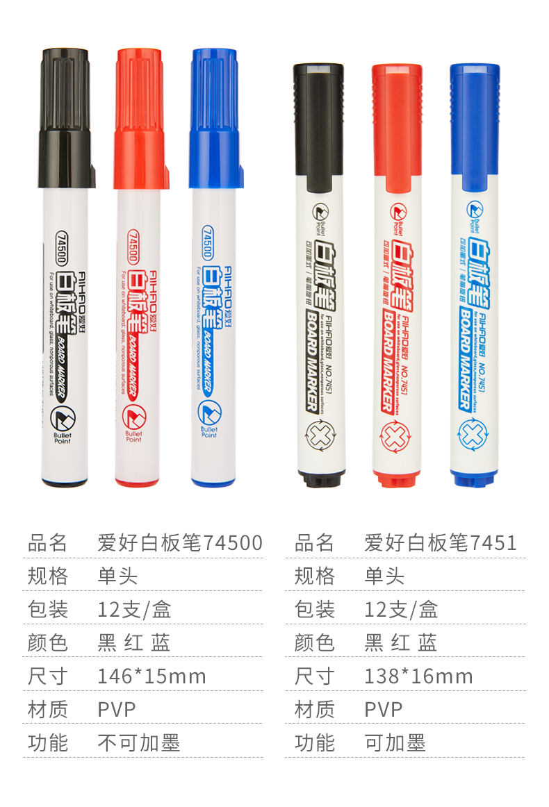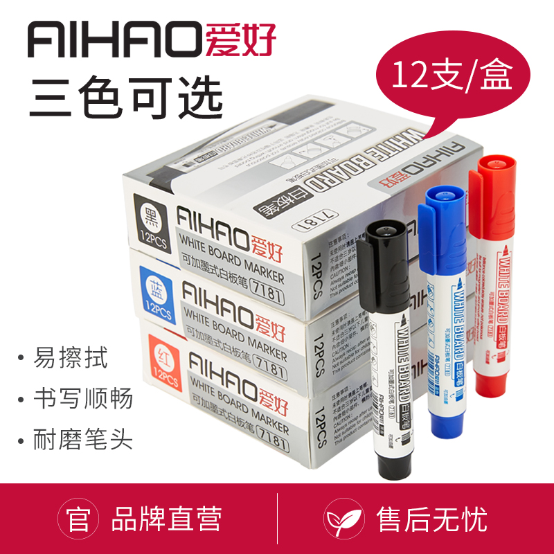 爱好(AIHAO) 74500(黑)白板笔可加墨水黑红蓝12...