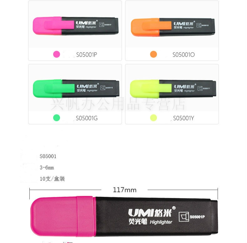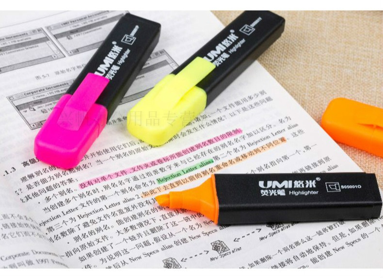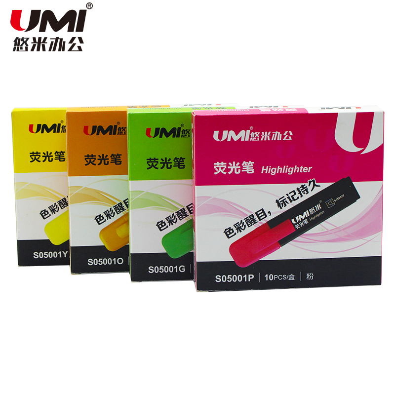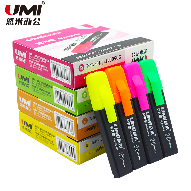 悠米(UMI)时尚醒目扁杆荧光笔6mm S05001 黄/橙...