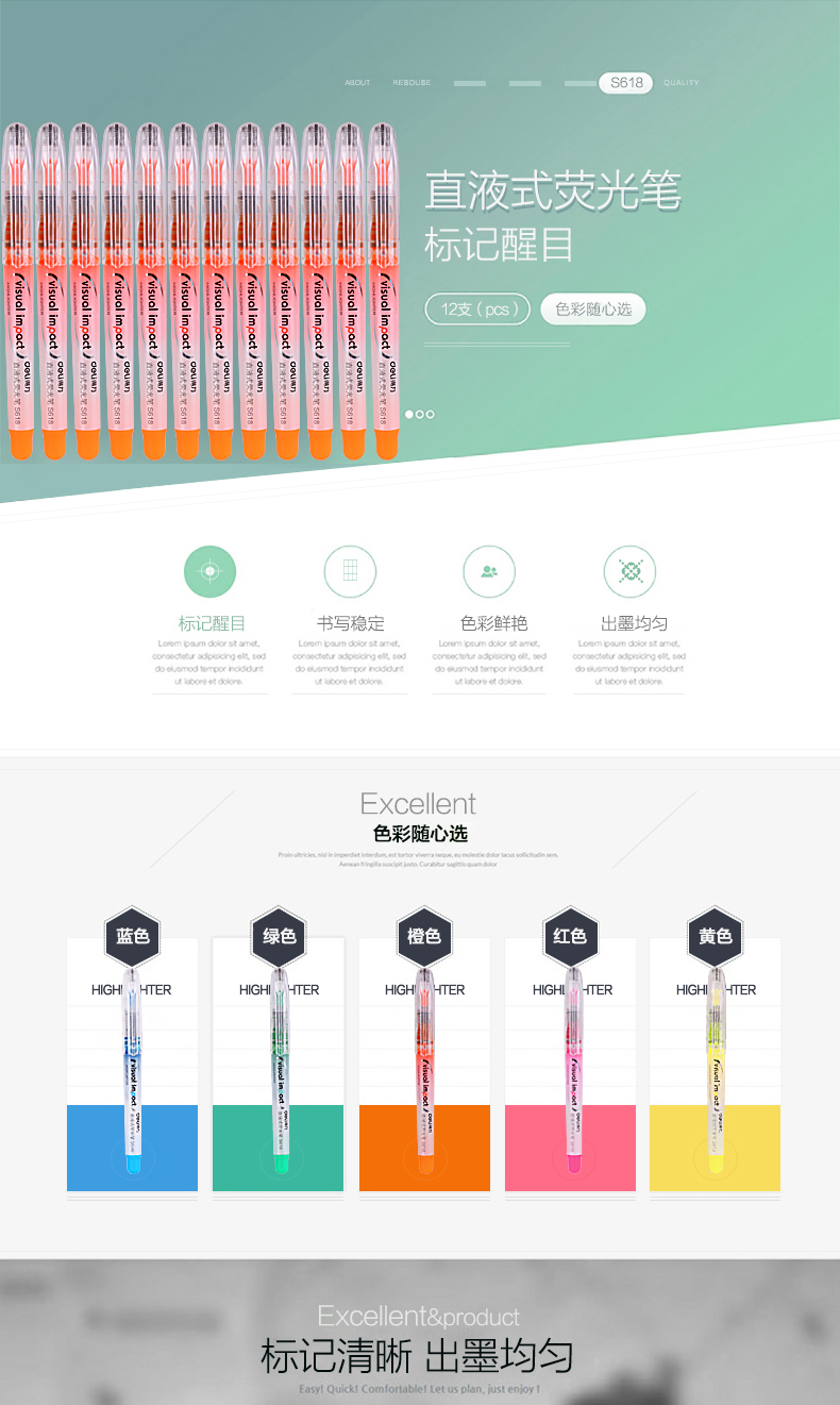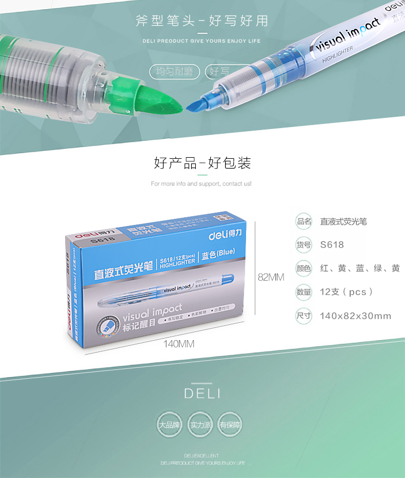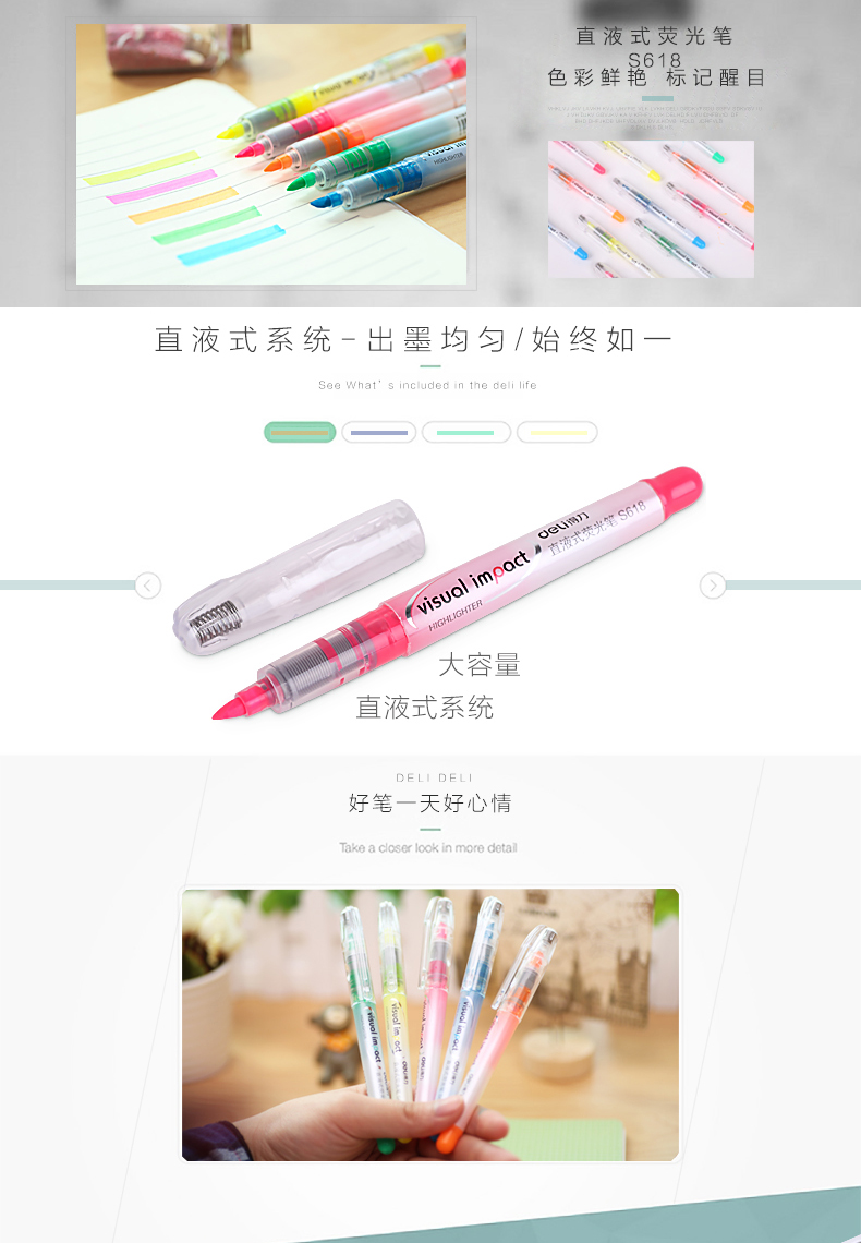 得力(deli) S618直液式荧光笔(橙)红/橙/黄/绿/...