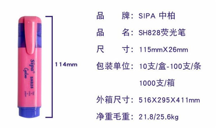 中柏(Sipa) SH828黄/粉/绿/荧光笔