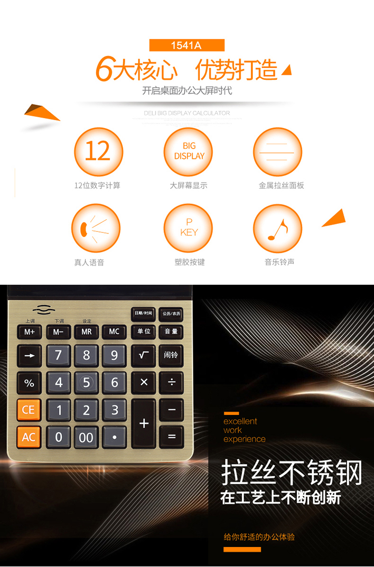 得力(deli) 1541A(金)语音计算器(个)