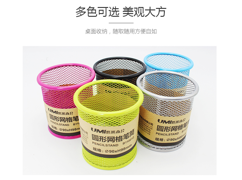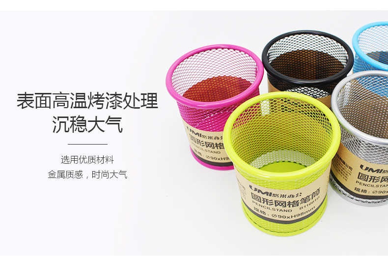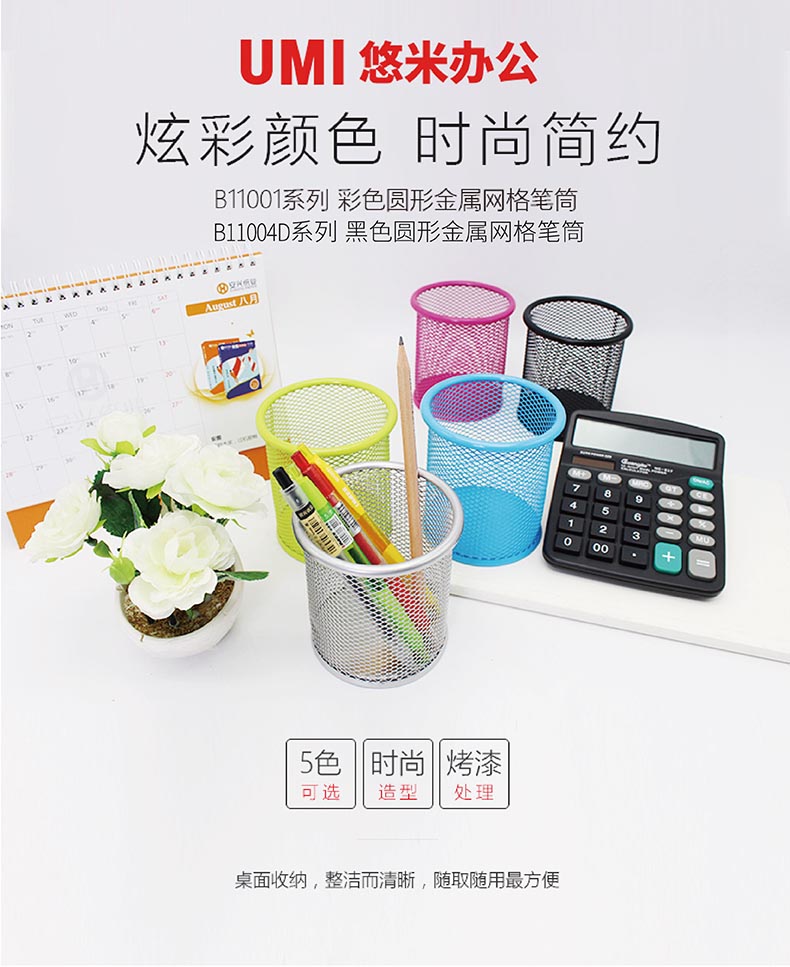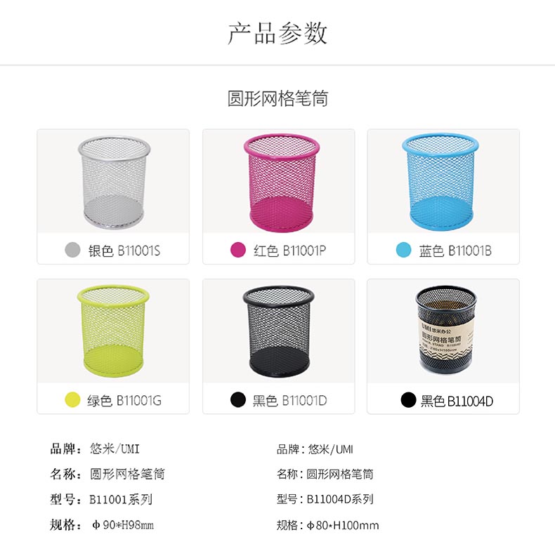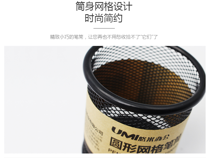 悠米(UMI)圆形金属网格笔筒 B11004D 黑