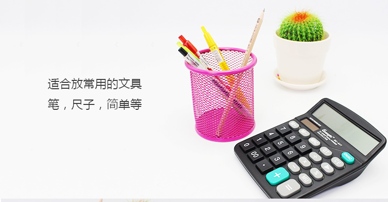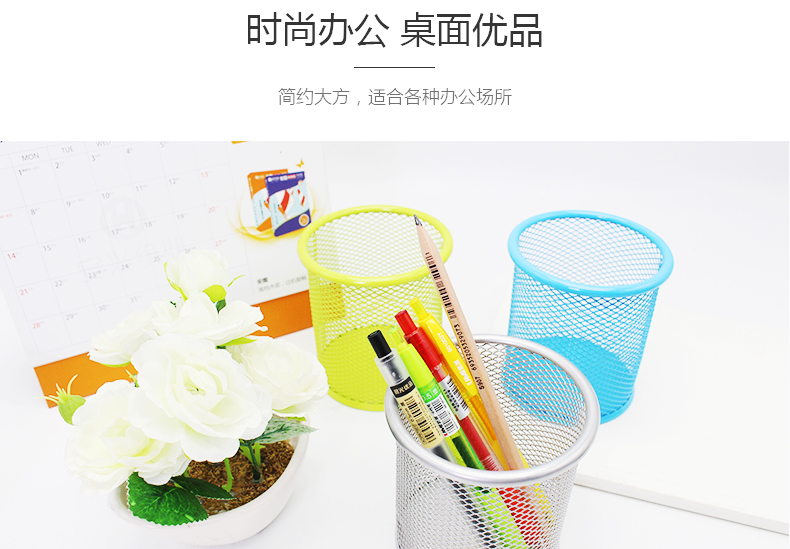 悠米圆形金属网格笔筒 B11001D 黑/银色