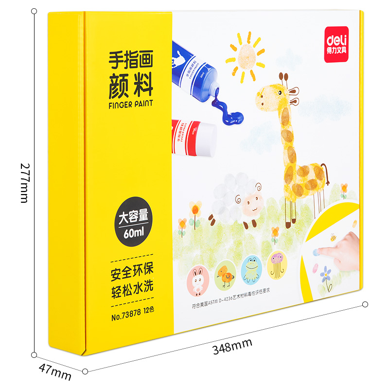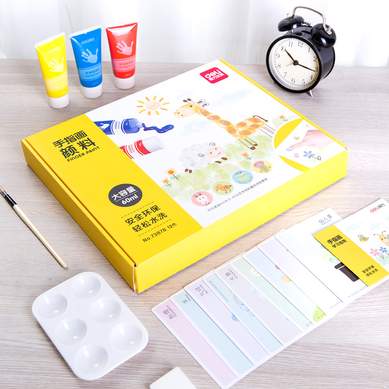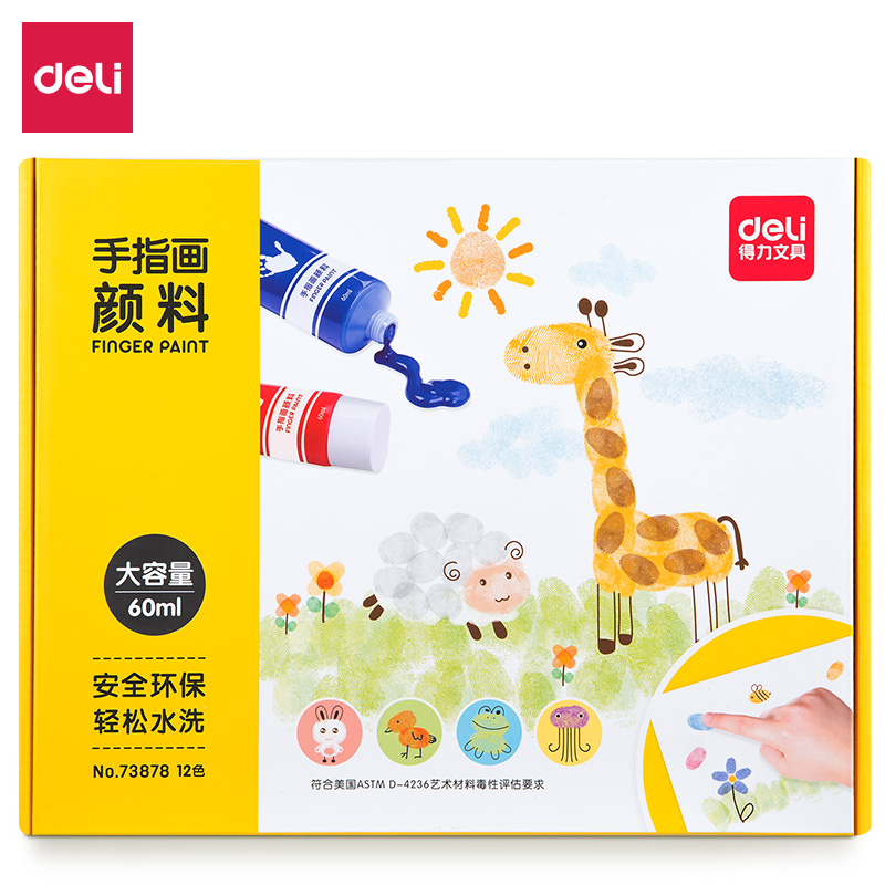得力(deli) 73878(混色)12色60ml手指画颜料