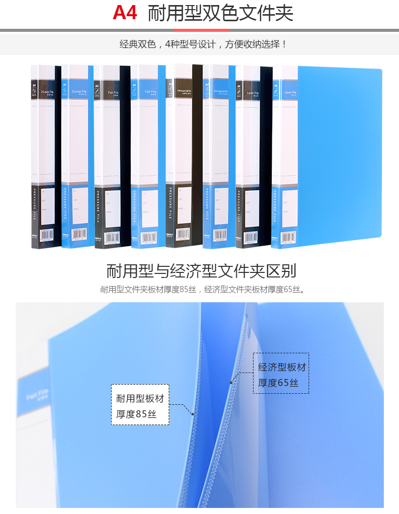 悠米(UMI)耐用型文件夹,单长押夹 W01103D 黑色/...