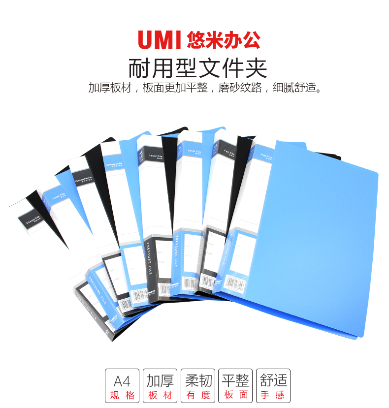 悠米(UMI)耐用型文件夹,长押夹+板夹 W01104B 蓝...