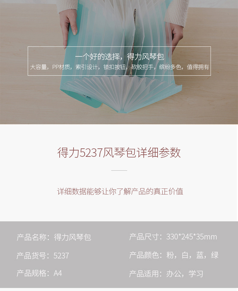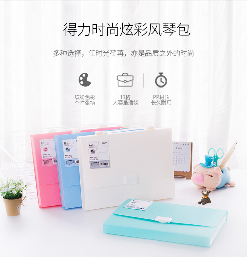 得力(deli) 5238风琴包(米白)(粉红)(清新绿)(...