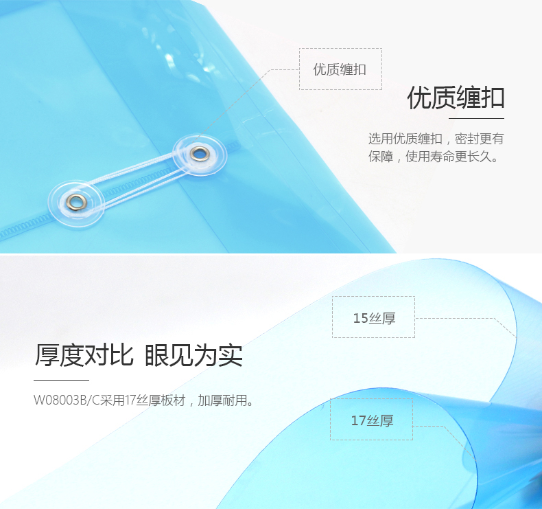悠米(UMI)透明缠扣文件袋档案袋,竖式,A4 W08003...