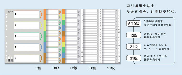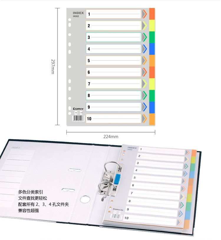 齐心(COMIX) IX902(十色)易分类索引纸A4-11...
