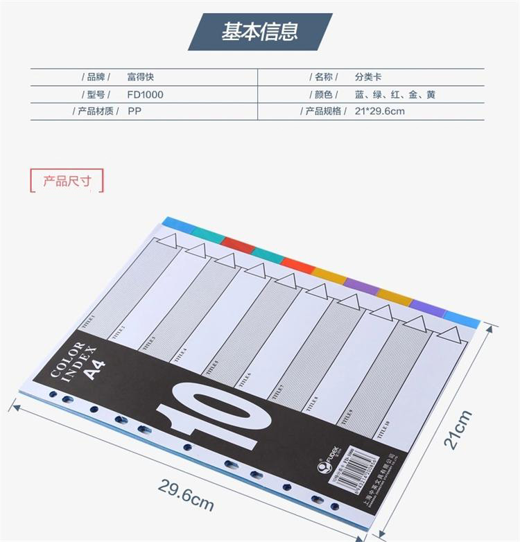 富得快(Fudek) FD1000塑料10格分类卡