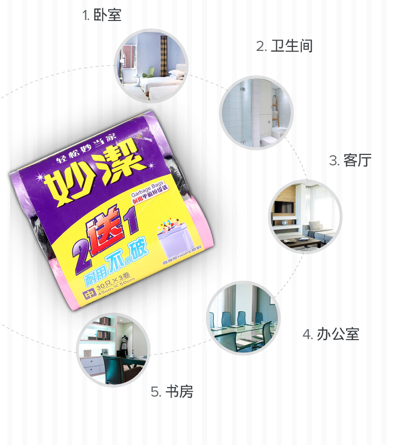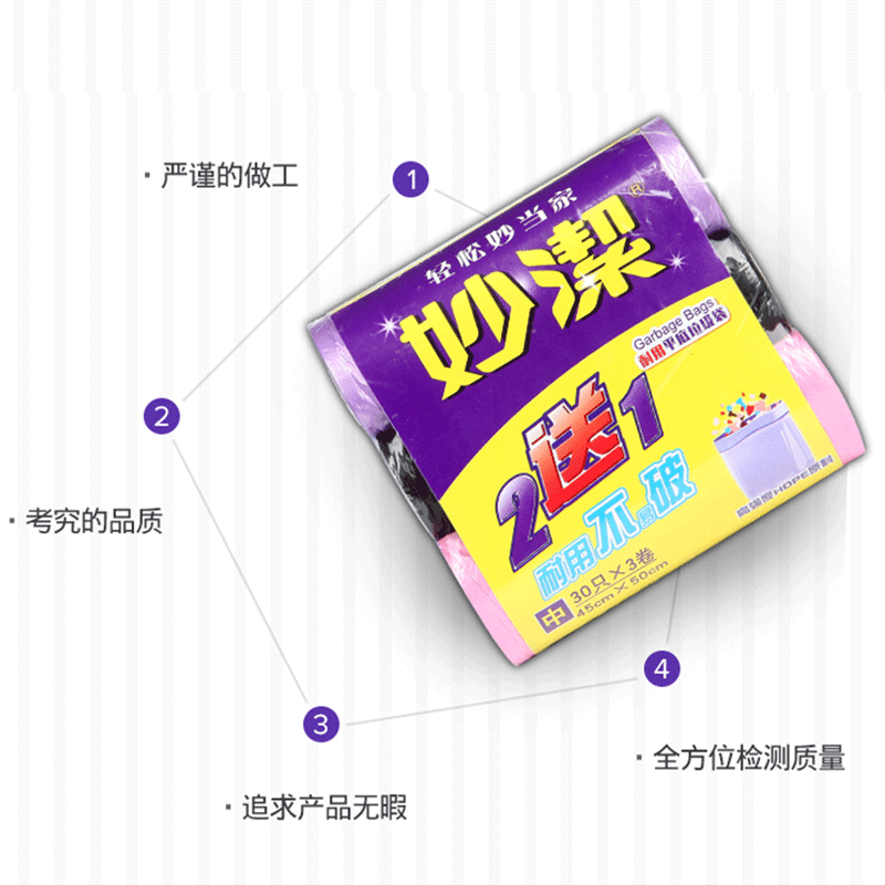 妙洁 MBGRMC2+1点断式平底垃圾袋