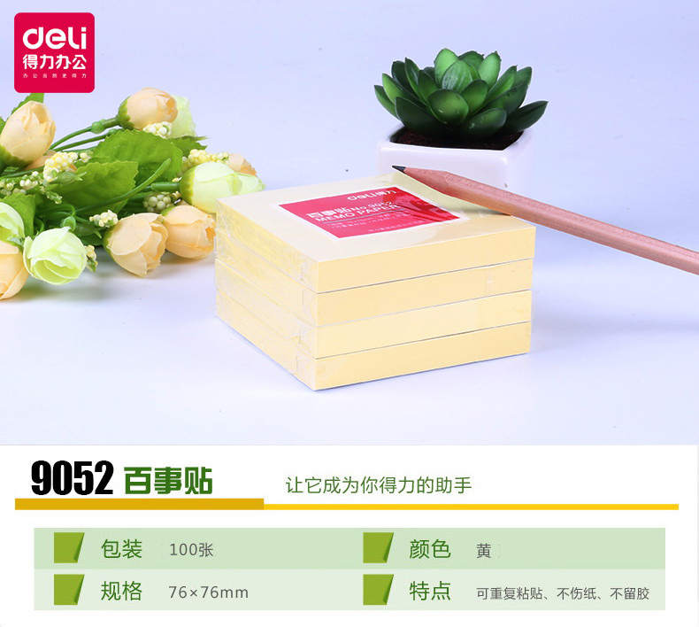 得力(deli) 9052(黄)百事贴(76×76mm)