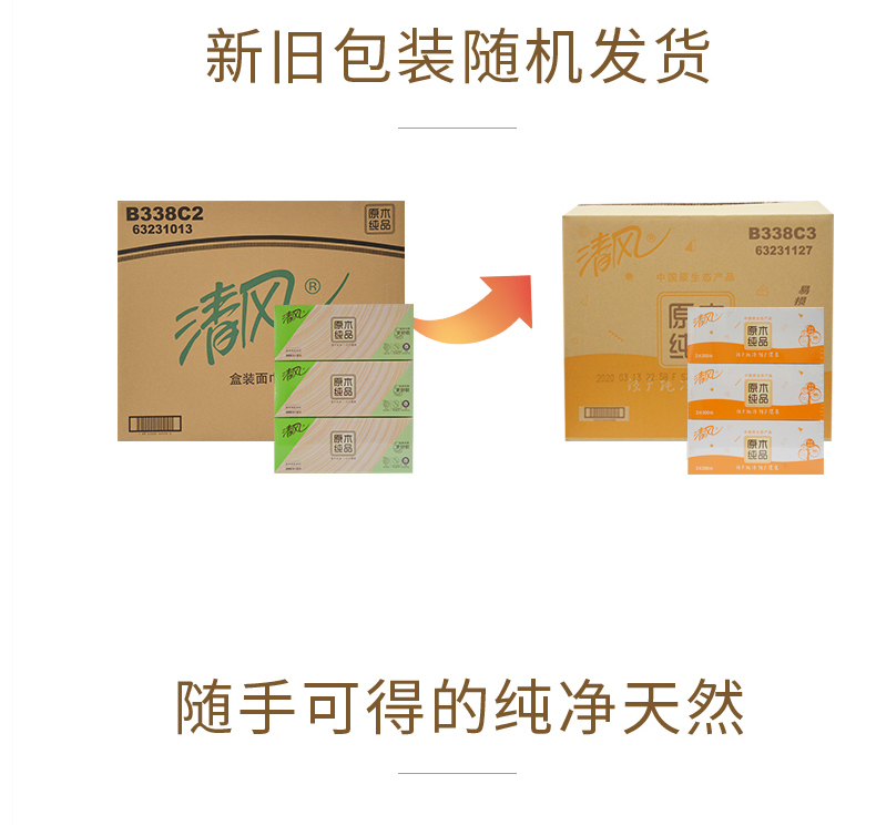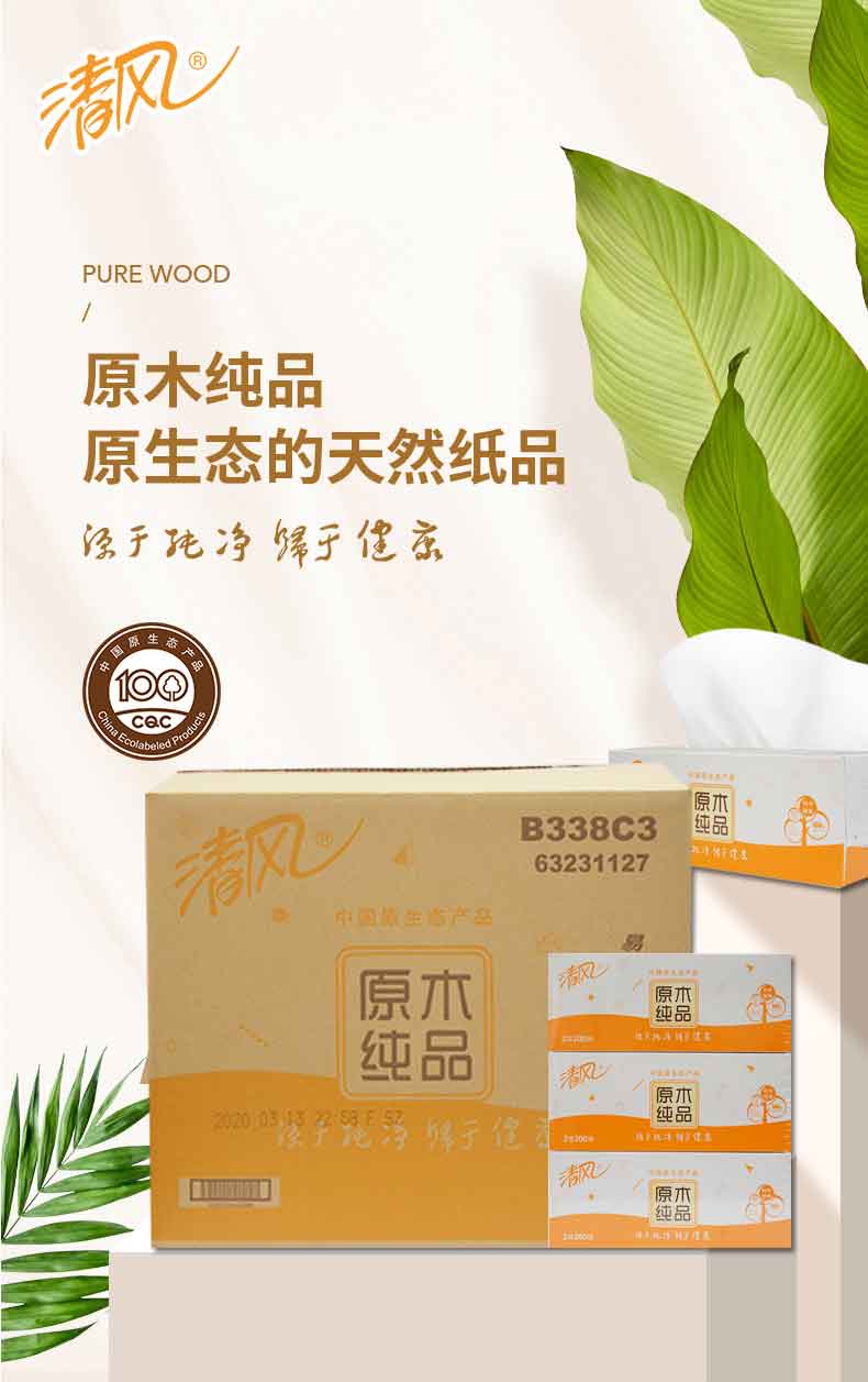 民用-清风B338C3/B338C2双层盒装面纸-200抽