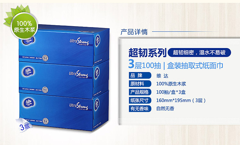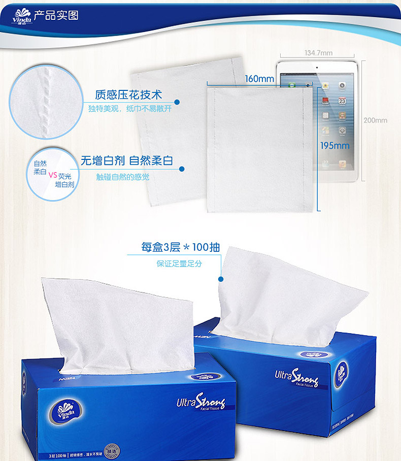民用-维达(Vinda) V2260三层无香型盒装面纸-10...