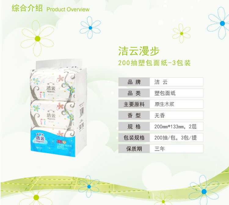 民用-洁云16220202漫步塑包面纸-200抽(小幅)