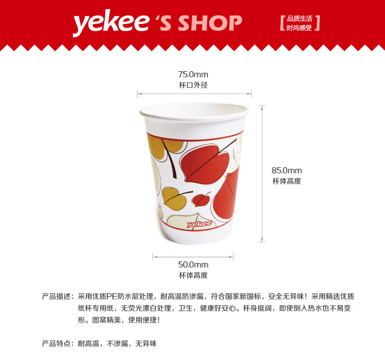 宜洁(yekee) Y-9925(白色)超值装数字纸杯250...