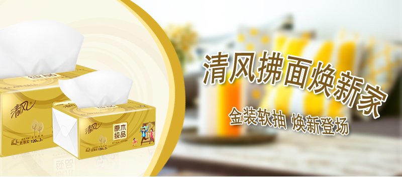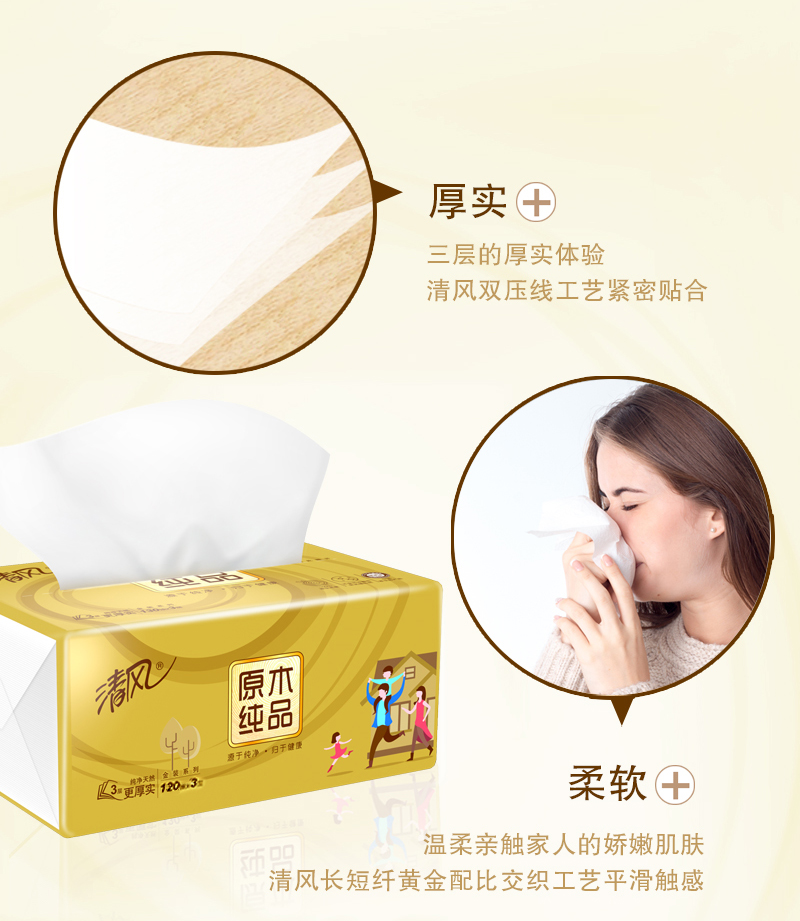 民用-清风 BR85SJ1三层原木纯品金装塑包面纸-130抽