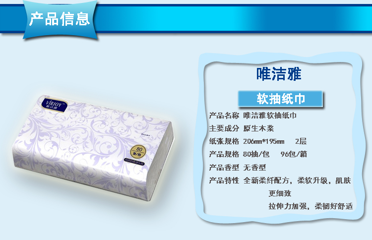 商用-唯洁雅(Virjoy) V312A双层塑包面纸-80抽