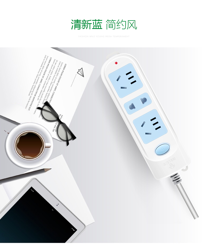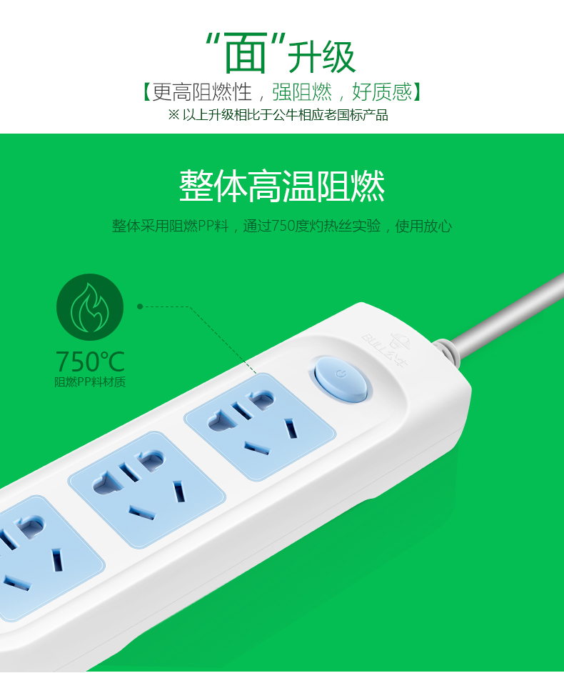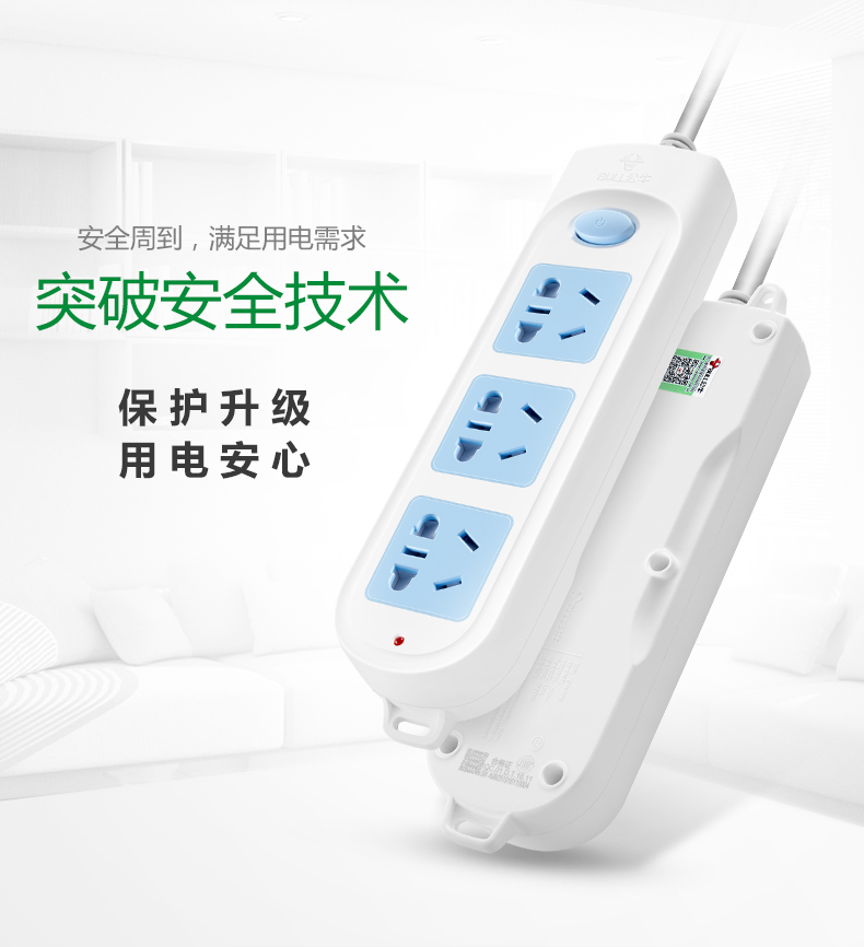 公牛(BULL)GN-606A(蓝白)新国标 三位总控 电源...