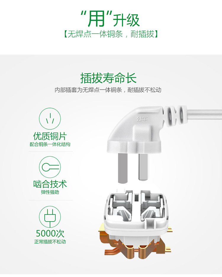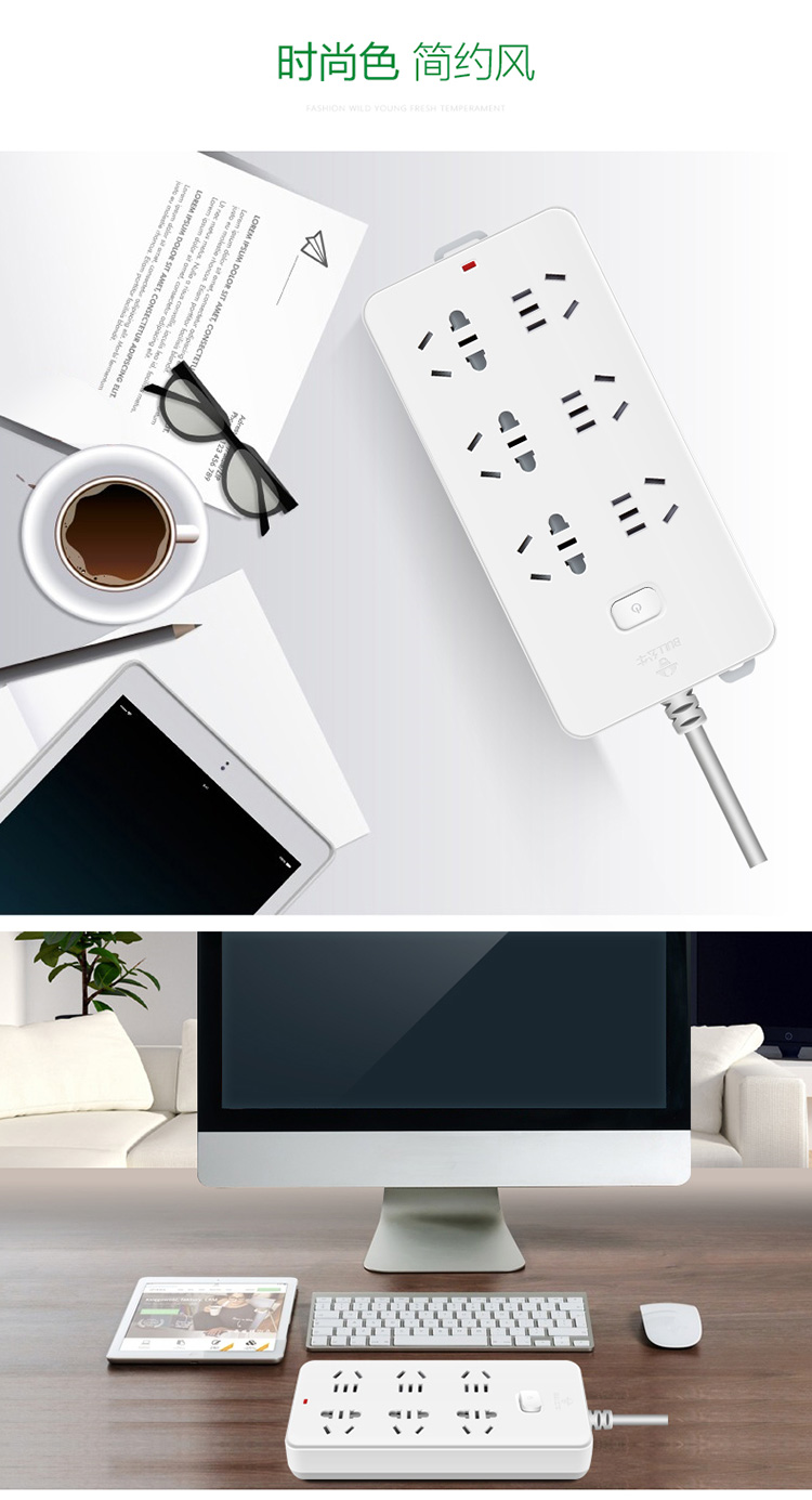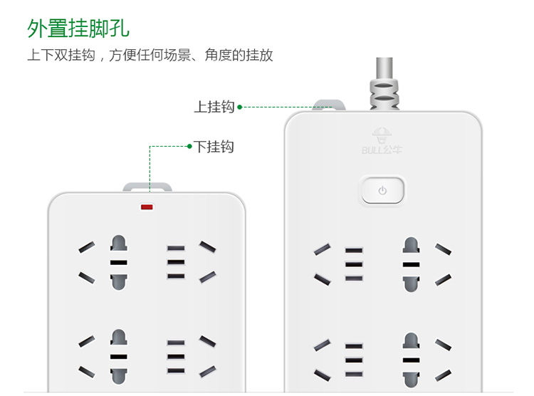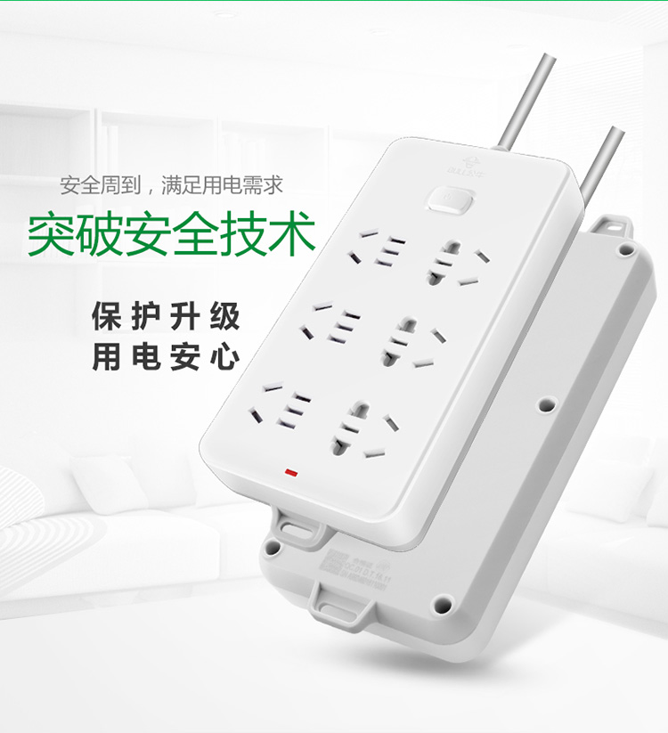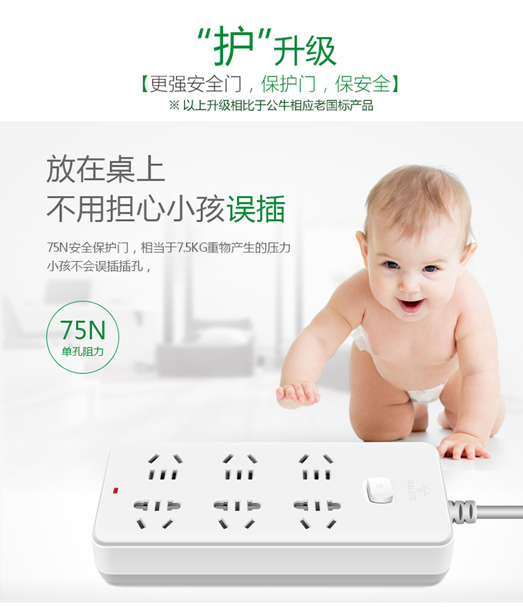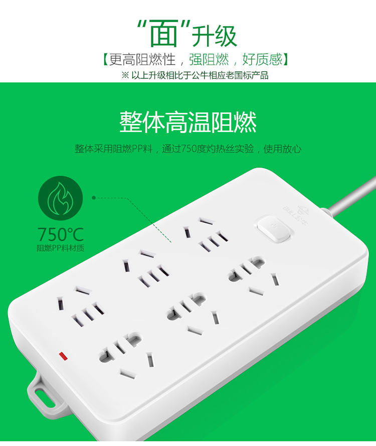 公牛(BULL)GN-109K(白色)新国标 六位总控 电源...