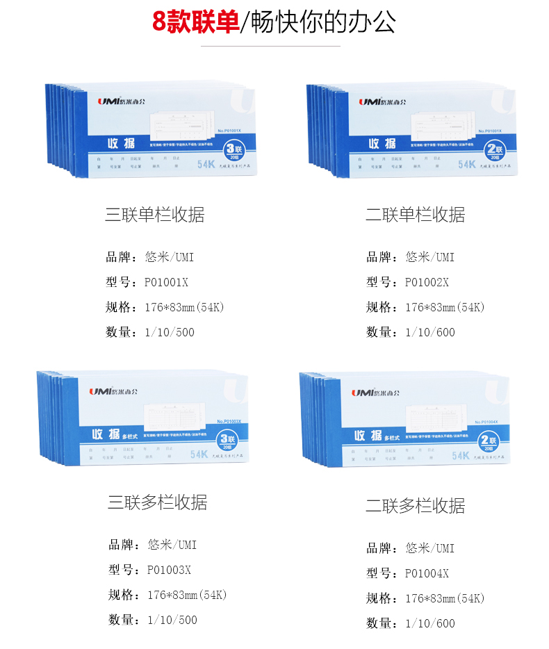 悠米(UMI)P01002X二联单栏收据54K