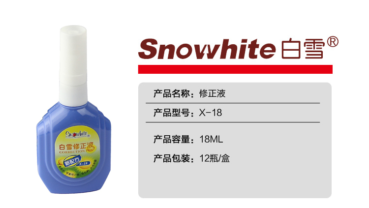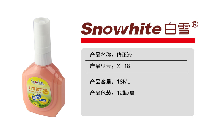 白雪(snowhite) X-18(混色)修正液12瓶/盒