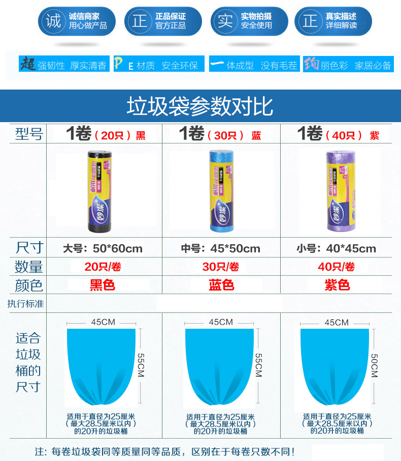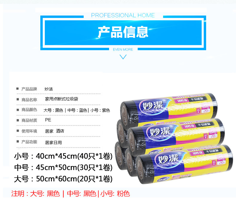 妙洁 MBGRMC点断式平底垃圾袋中号500*450