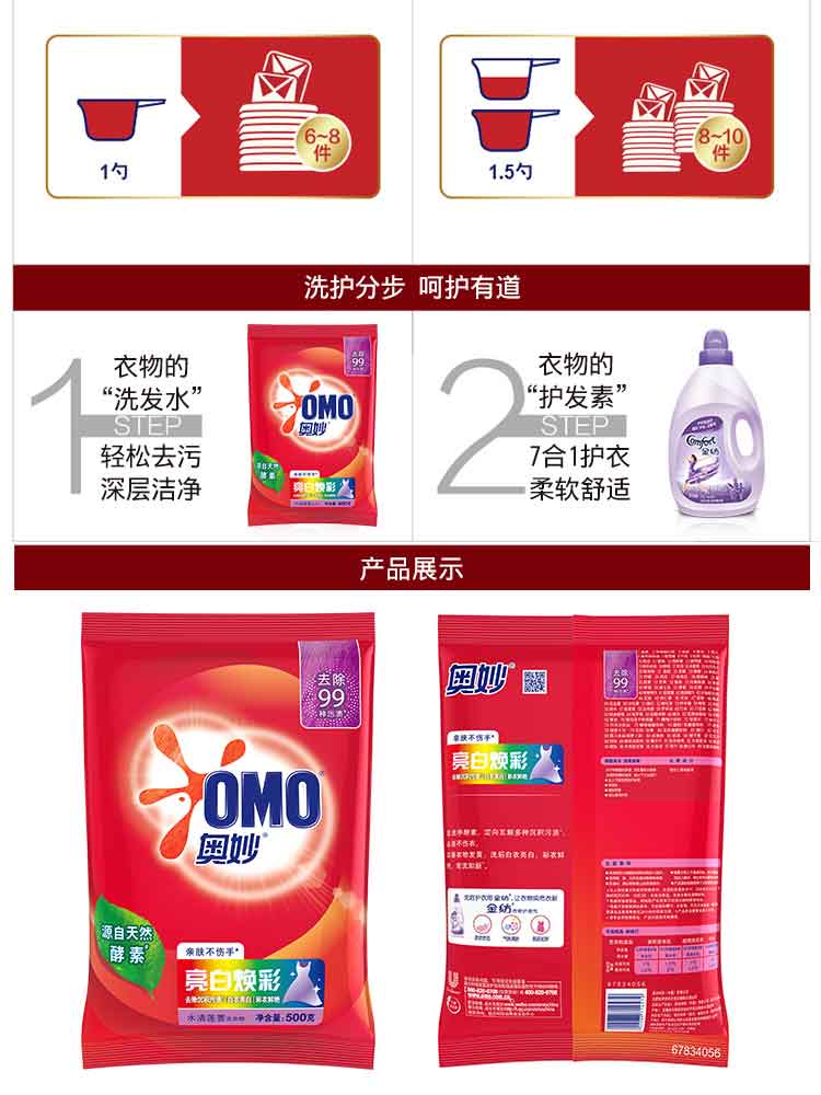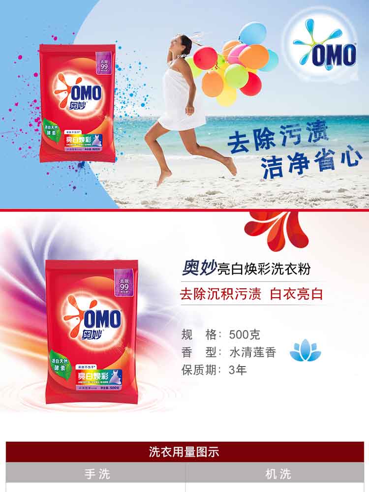 奥妙(OMO) 亮白焕彩洗衣粉500g
