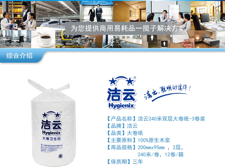 商用-洁云(Hygienix) 11612601双层大卷纸-...