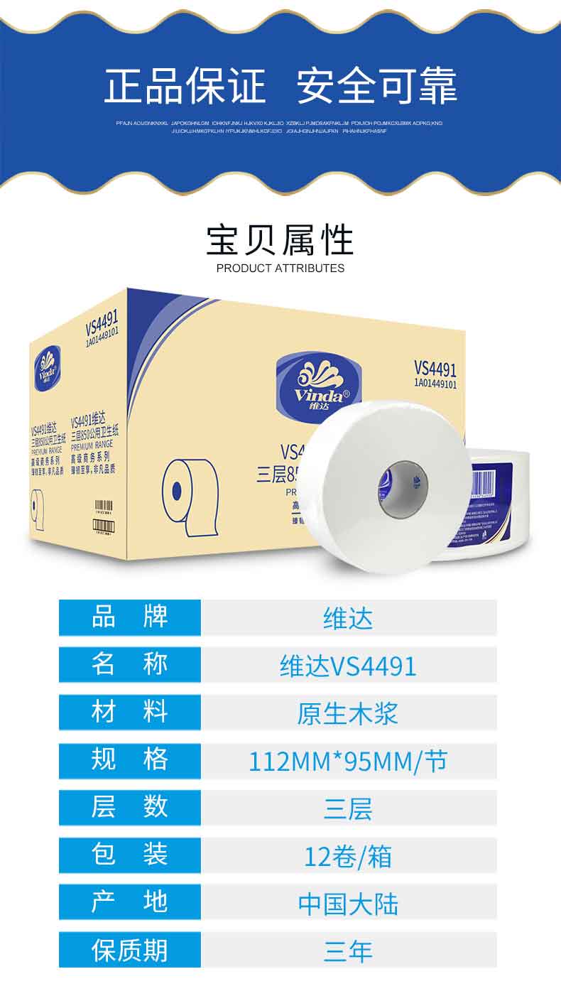 商用-维达(Vinda) VS4491三层压花大卷纸-805...