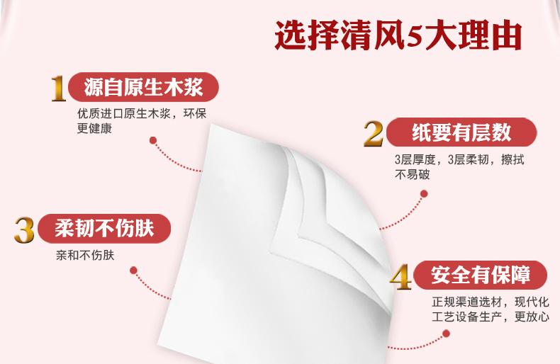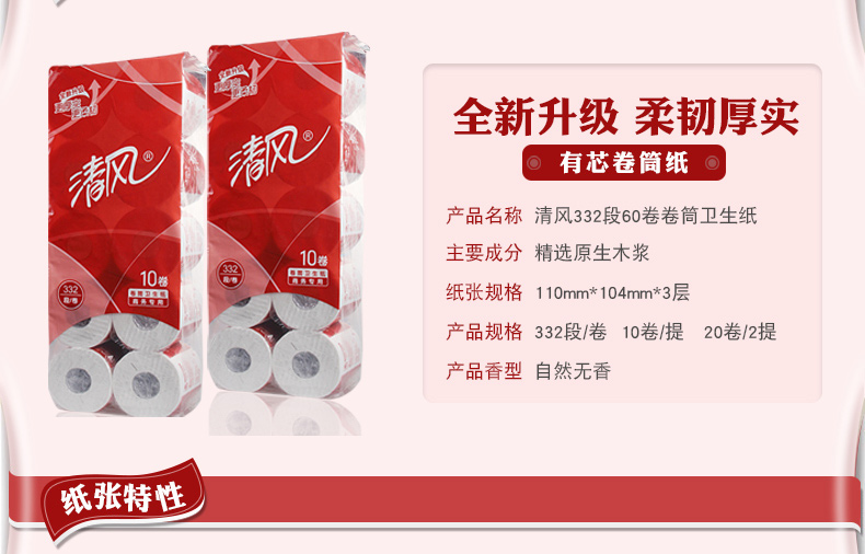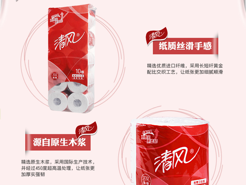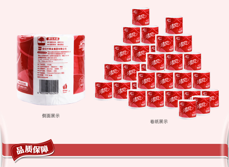 商用-清风 B20AA8三层平纹卷筒卫生纸-332段