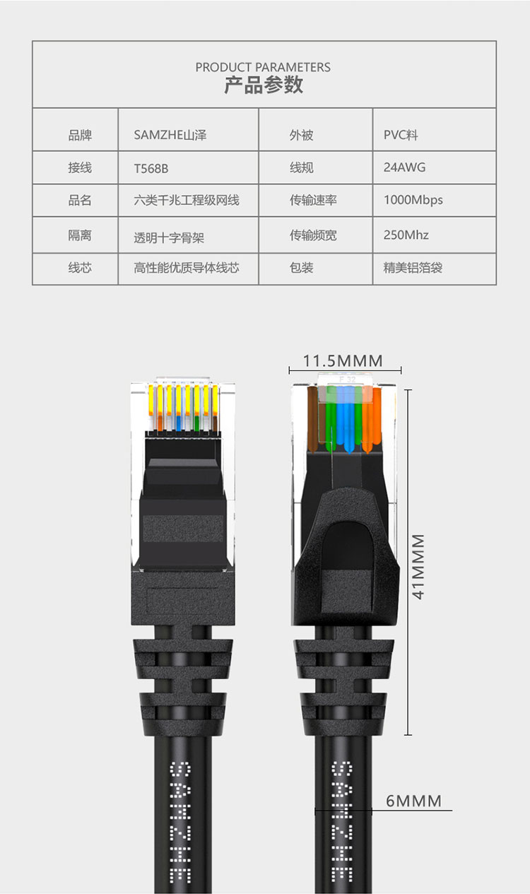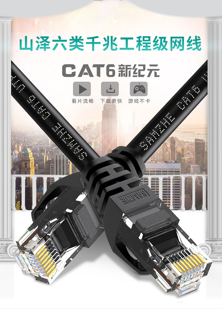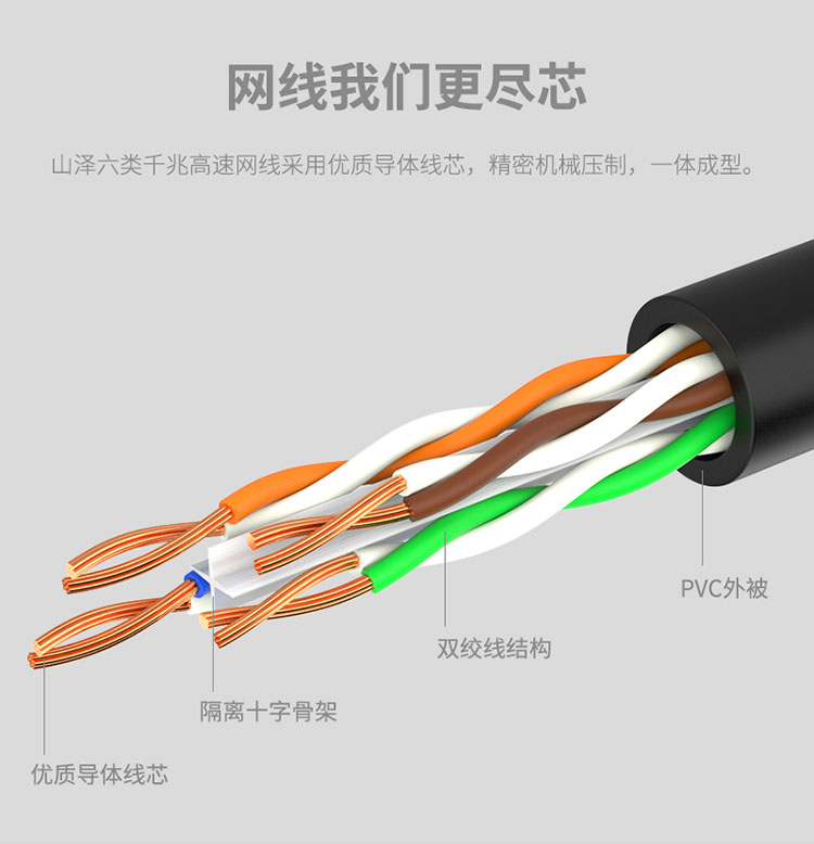 山泽CAH-6020 网线六类CAT6千兆极速八芯双绞网络跳...