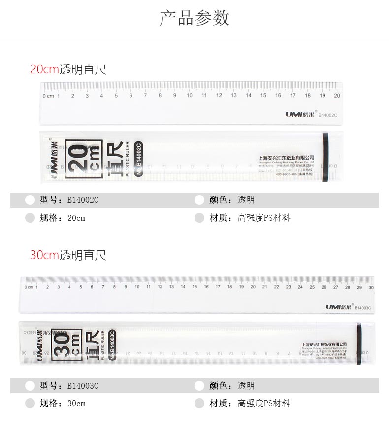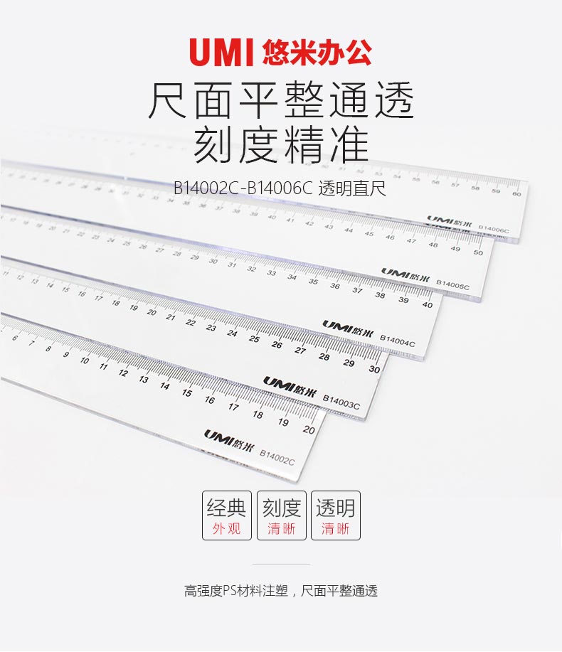 悠米(UMI)透明塑料直尺,50cm B14005C 透明