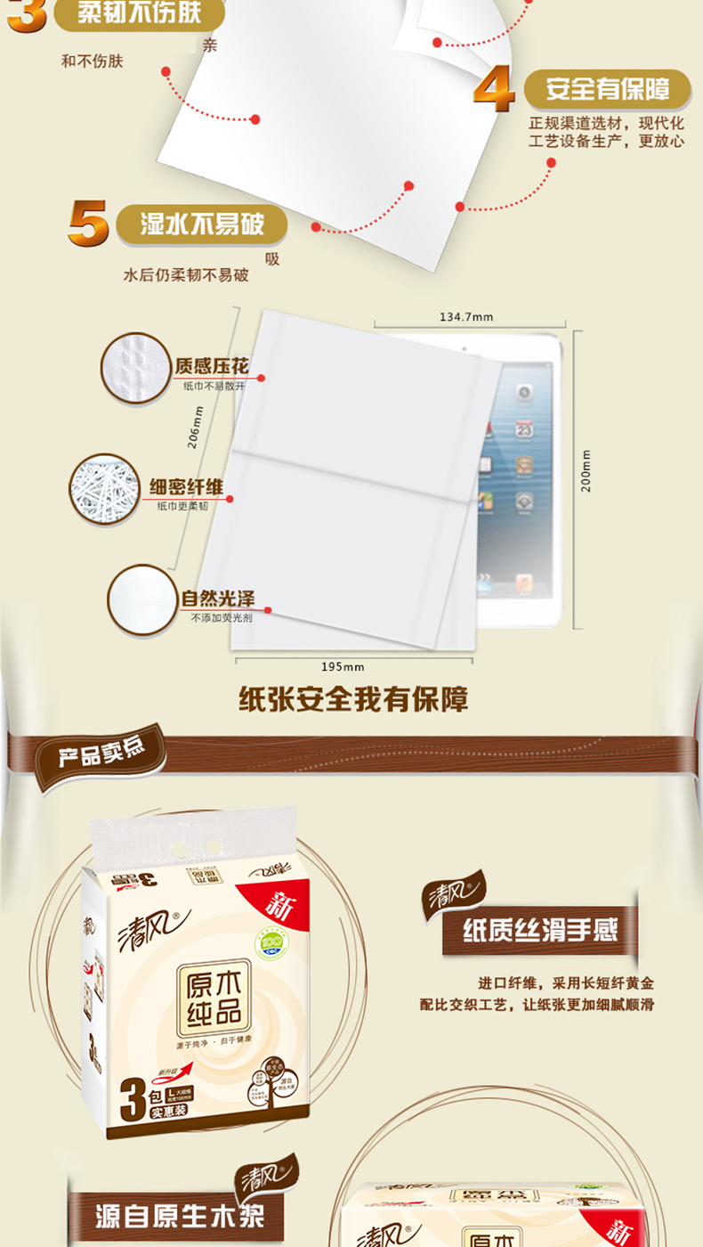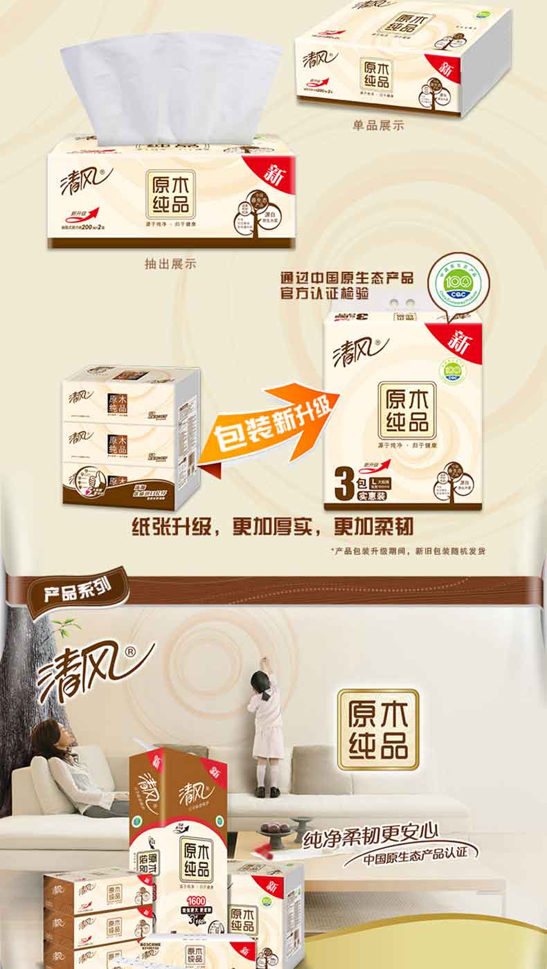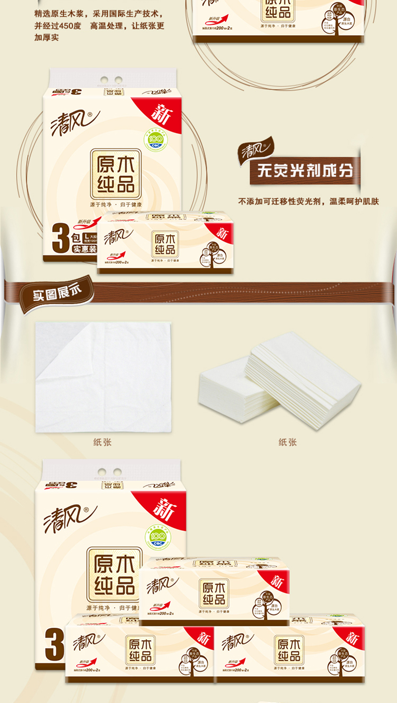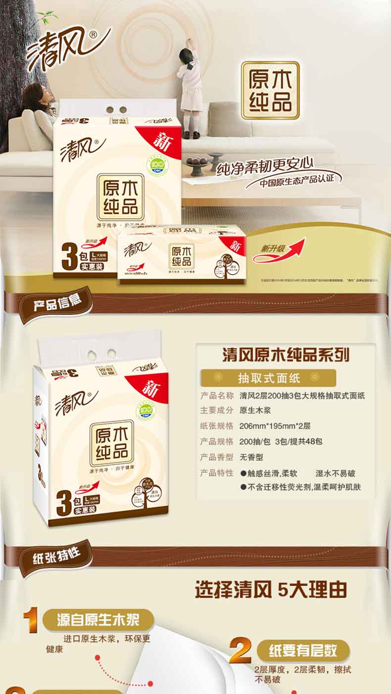 清风 大原木纯品抽纸L号 200抽无香大号纸巾 48包/箱