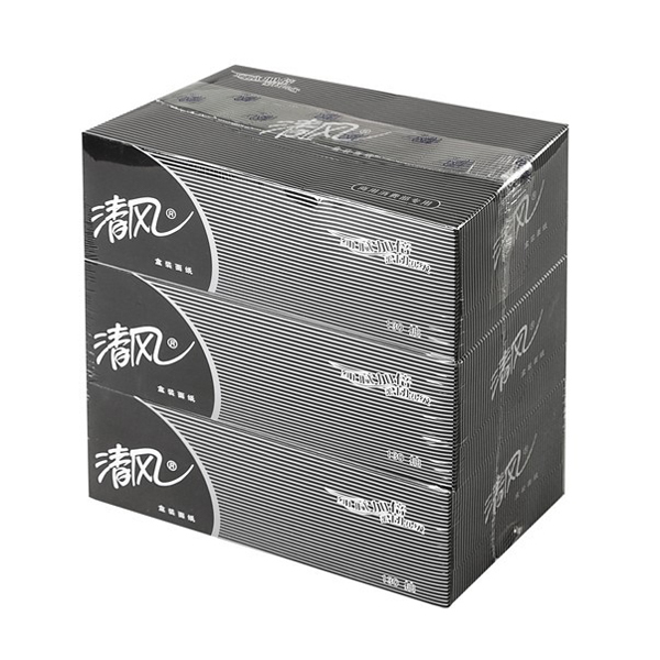 清风商务系列盒装 面纸纸巾2层200抽 黑白盒