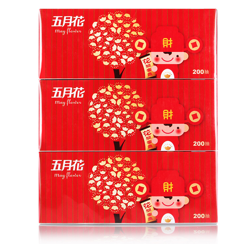 五月花喜庆装纯厚经典2层200抽盒装面巾纸*36盒/箱